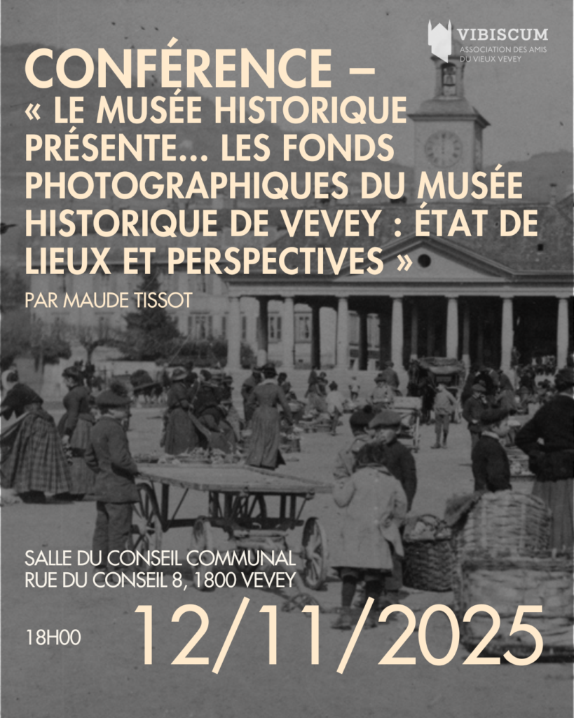 Le Musée historique de Vevey conserve un vaste fonds photographique rassemblant plus de 75 000 phototypes documentant Vevey et sa région. Des calotypes de Jean Walther, réalisés dans les années 1850, aux reportages du XXᵉ siècle, ces collections témoignent des transformations du paysage urbain, des événements et des modes de vie des Veveysannes et Veveysans.